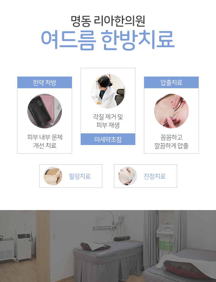 자연스럽게 피지의 분비량을 저하시켜 주므로 여드름이 반복되어 나타나는 현상에 괴로워하고 계신 분들께 도움이 될 수 있는 치료 방안이라고 생각해 주시면 되는 것이었죠. 이러한 치료는 비단 얼굴에만 한정적으로 이루어지는 게 아닌, 등이나 가슴에 올라온 여드름을 치료하는 데에도 도움이 되어 줄 수 있었는데요. 따라서 어느 위치에 여드름이 올라와 있건, 그로 인해 스트레스를 받고 계셨던 상황일 시 충무로한의원으로 걸음을 하셔서 이제라도 안정을 찾아갈 수 있게 노력해 보실 것을 권유드리고 싶었어요. 이런 관리를 통해 차츰 피부를 건강하게 유지해 보실 수 있을 거라고 설명드렸었어요.