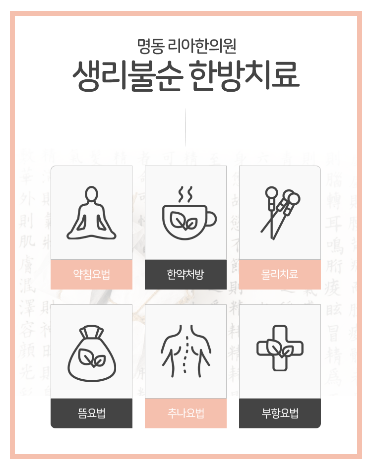 안녕하세요. 명동 리아한의원입니다. 여성분들은 보통 2차 성징 시기에 초경을 하게 되는데요. 이때부터는 일반적으로 달에 한 번 정도의 주기를 가지고 꾸준하게 월경을 하게 된다고 말씀을 드렸습니다. 혹시라도 월경의 주기가 과도하게 짧거나 반대로 과도하게 길 경우에는 문제가 발생한 것이기 때문에 조속하게 상태를 살펴 주시길 바라도록 하겠습니다. 또한 문제가 되는 것은 월경의 주기에만 있는 게 아닙니다. 월경을 할 시기가 아님에도 불구하고 출혈이 일어나는 것 역시 시청역부정출혈로, 심각한 문제가 될 수 있기 때문에 상태를 확인해야 한다는 말씀을 드렸습니다.