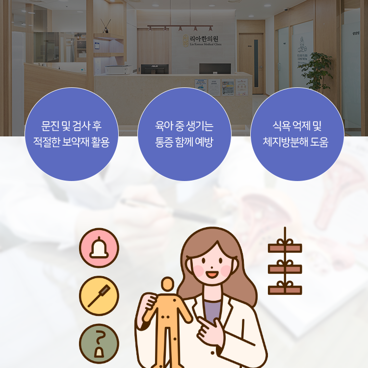 추가로 출산을 겪고 난 다음이면 함께 찾아올 수 있는 체형, 부종 문제 등을 고려하면서 접근하여 회복을 도모하고 있기 때문에 여러 방면에서 불편을 겪고 계시던 상황이라면 한의학적인 치료로 산후조리를 진행해 나가는 게 몸 건강에 충분한 도움을 줄 수 있을 것이라는 생각이 들었습니다.