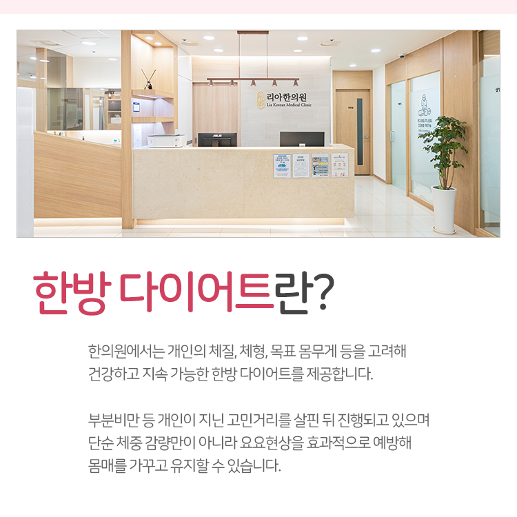 처음 며칠은 식단을 조절하고 운동을 병행하며 순조롭게 진행되는 듯 보여도 시간이 지날수록 몸은 예전의 상태로 돌아가려는 강한 본능을 발휘하게 됩니다. 이러한 과정에서 겪는 심리적인 압박감과 육체적인 피로도는 중도 포기로 이어지기 쉬운 환경을 조성한다고 이야기합니다. 그외에도 여러 이유로 다이어트에 어려움을 겪는 경우가 많았을 텐데 명동 리아한의원에서는 충무로감비환과 같은 방식으로 안정적인 체중 감량에 대한 도움을 전해드리고 있습니다.