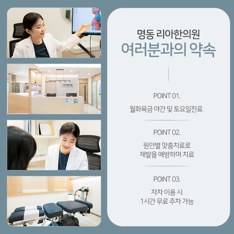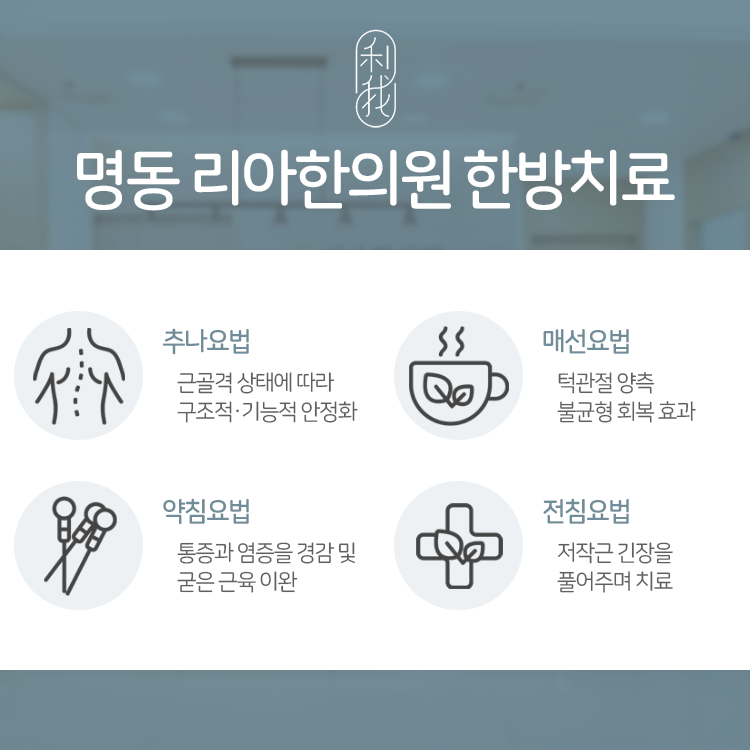 안녕하세요. 명동 리아한의원입니다. 평소 일상생활을 지속하다 보면 목이나 어깨 부근이 묵직하게 눌리는 듯한 느낌이나 뻐근한 통증을 자주 경험하게 됩니다. 대개 이러한 증상이 나타나면 단순히 과도한 업무로 인한 피로 누적이나 잘못된 수면 자세 때문이라고 치부하며 가볍게 넘기는 경우가 많습니다.