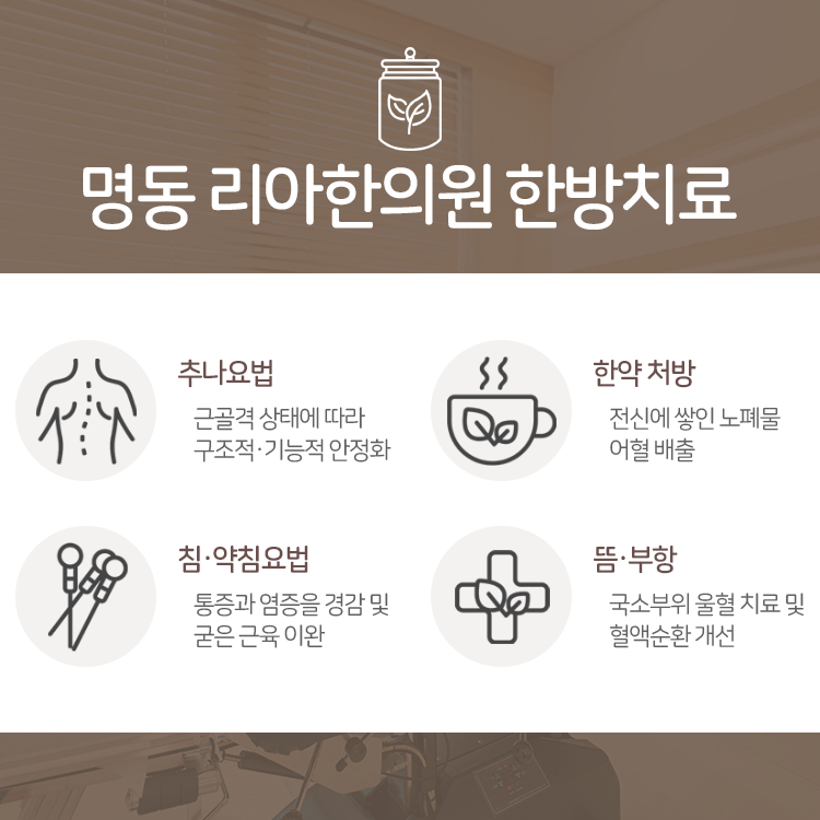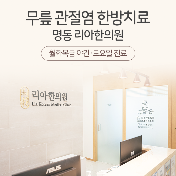 이런 증상이 계속됨에 따라 정상적인 보행이 어려워지는 등의 문제를 겪게 됩니다. 또한 무릎을 굽히고 펼 때 소리가 느껴지는 것도 무릎관절염 증상의 일종인데요. 이러한 증상들이 찾아와 정상적 생활을 방해하고 있던 중이라면 명동퇴행성관절염 한의원으로 내원을 하셔서 건강한 회복을 위해 노력을 기울이실 필요가 있습니다.