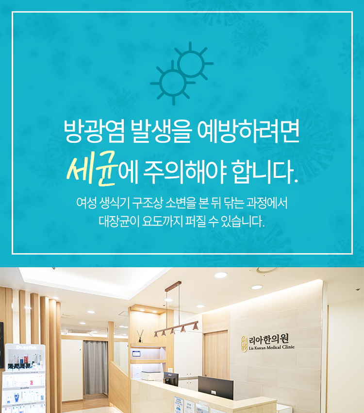 방광염은 여성에게 흔한 질환이고 경우에 따라서는 남성 또한 노출될 수 있는 질환이기에 남녀노소 주의가 필요합니다. 초기에 치료를 하여 안정 상태 유지에 들어갈 수 있도록 하는 것이 무엇보다도 중요한 일이 된다고 생각해 주시면 되겠습니다. 또한 평상시 바른 생활 습관을 유지하시면서 예방과 관리에도 힘을 써 주실 것을 당부드리고 싶었는데요. 충분히 수분을 섭취하고 규칙적으로 배뇨를 하는 등의 노력을 통하여 상태를 진정시키는 데에도 일부 도움이 되어 줄 수 있으니 참고하시기를 바랍니다. 감사합니다.