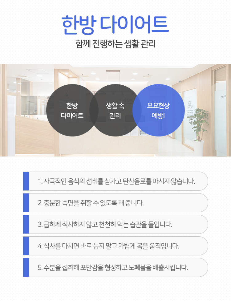 건강한 다이어트를 위해서라면 먹는 양을 조금씩 조절해 나가면서 몸이 먼저 바뀐 식단에 적응할 수 있는 시간을 주어야 합니다. 그 뒤, 충분히 적응을 했다면 또다시 양을 조금씩 줄이고 줄이면서 전반적인 생활 습관을 개선한다는 태도로 접근하는 게 바람직합니다. 다만 이런 방식은 단기간 내 실천 가능한 것은 아니다보니 오히려 더 어렵고 까다롭게 느껴지는 것 또한 사실일 것이라는 생각이 듭니다. 그렇기에 본원에서는 충무로식욕억제제 처방을 받아 보실 것을 권유드리고 있는 것인데요. 식욕 억제를 도와드리는 한약 처방을 통한다면 자연스럽게 식욕을 눌러 주면서 건강한 식이요법을 병행하실 수 있게 될 것이라고 말씀을 드립니다.