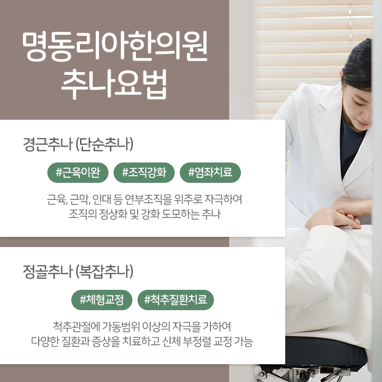 얼마 전부터 아침에 일어나면 허리가 굳어 있는 것 같아 몸을 펴기까지 시간이 걸리고, 오래 앉아 있다 갑자기 일어서면 허리에서 뚝 하는 소리가 들려오는 등의 불편한 상황을 겪고 계신다면 허리디스크를 의심해 보아야 한다고 말씀을 드리는데요. 명동역허리통증과 더불어 엉덩이 쪽이 당기는 느낌이 든다거나 허벅지 뒤쪽 저린 증상이 찾아오는 등 하지 방사통에 대한 불편까지 겪고 있는 상황이라면 이는 실제로 허리디스크가 보내오는 문제의 신호일 수 있습니다.