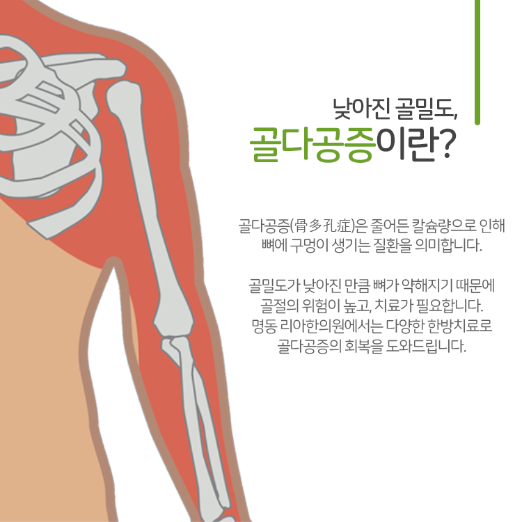 그러나 내부적으로 발생하는 질환들은 정기적으로 검진을 해 나가는 것이 아닌 이상은 눈치 채기 쉽지 않고 그러는 사이 상태가 점점 더 악화될 수 있습니다. 대표적으로 이야기할 수 있는 것이 골다공증인데요. 이번에는 골다공증이 무엇이며 어떤 증상을 야기하는지 그리고 명동 리아한의원은 종로골다공증치료에 어떻게 접근하고 있는지 설명을 돕도록 하겠습니다.
