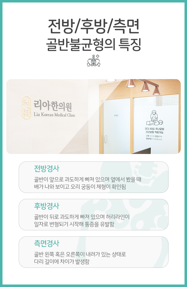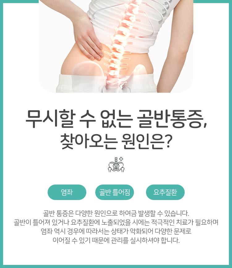 신체 부위 중에서도 골반이라는 곳은 사람 몸에서 주춧돌의 역할을 한다고 해도 과언이 아니라 볼 수 있겠습니다. 척추를 지지해 줄 뿐 아니라 척추-하체를 연결지어 주는 곳 역시 골반이기 때문에 그만큼 중요한 부위라 볼 수 있겠습니다. 뿐만 아니라 골반은 깔때기와 유사한 형태를 가졌다고 할 수 있겠는데 그렇기에 골반 안쪽으로는 방광, 자궁처럼 내부 장기가 존재하고 골반은 이들을 보호해 주고는 하였습니다. 여러 가지 역할을 도맡고 있는 만큼 골반의 균형이 깨지게 되면 그저 불균형을 야기하는 정도에서 그치는 것이 아니라 그보다 다양한 증상이 찾아와 건강한 삶을 방해하는 원인이 될 수밖에 없습니다. 따라서 종로골반교정한의원은 이에 대한 적극적인 치료가 중요함을 강조드렸습니다.