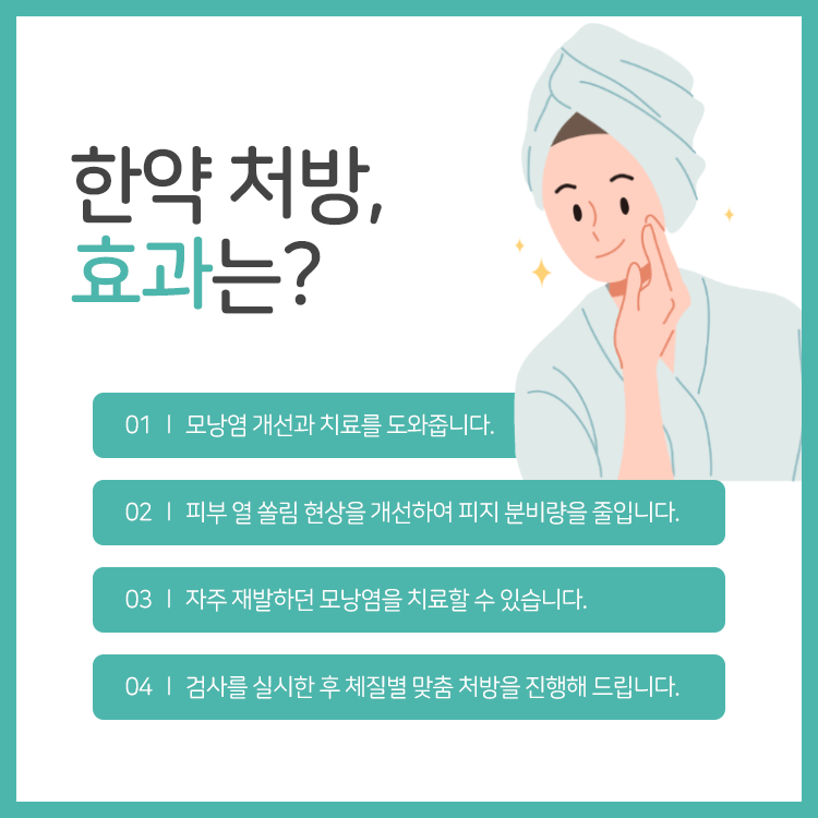 본원에서는 먼저 피부 진단 과정을 통해 다각도에서 피부 상태를 살펴드리고 있으며 그에 따른 관리를 도와드리고는 하는데요. 모낭염은 크게 표재성/심재성으로 구분이 되고 있으며 이러한 유형까지 함께 고려한 접근이 이루어지고 있다고 생각을 해 주시면 되겠습니다. 약침요법처럼 염증을 가라앉히는 치료를 진행해 보실 수 있을 뿐만 아니라 안면부 기혈 순환 촉진 및 염증 완화를 돕는 정안침이나 초음파 진정 관리, 한약 처방 등 필요에 따른 여러 가지 방식으로 접근을 하고 있다고 보시면 되겠습니다.